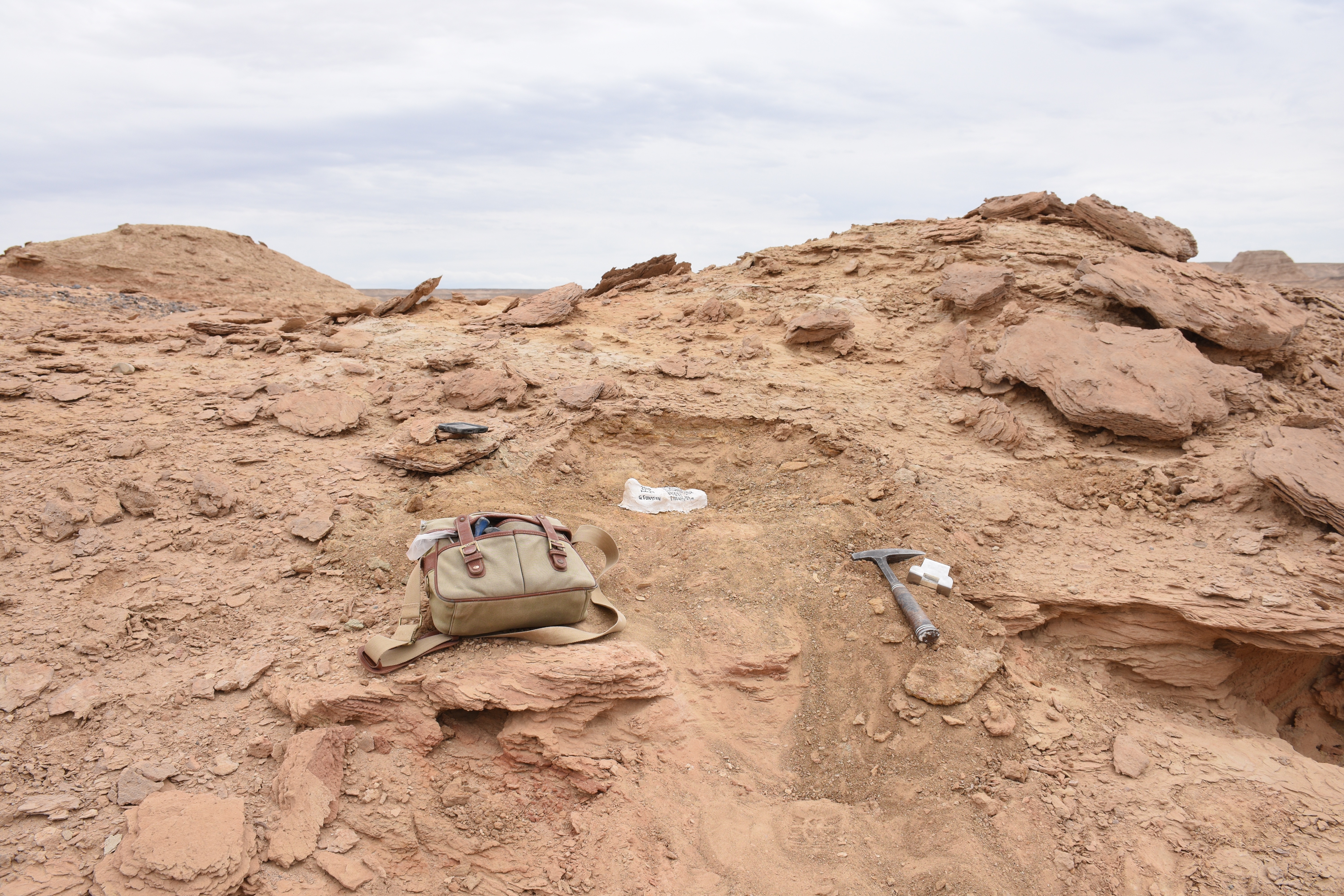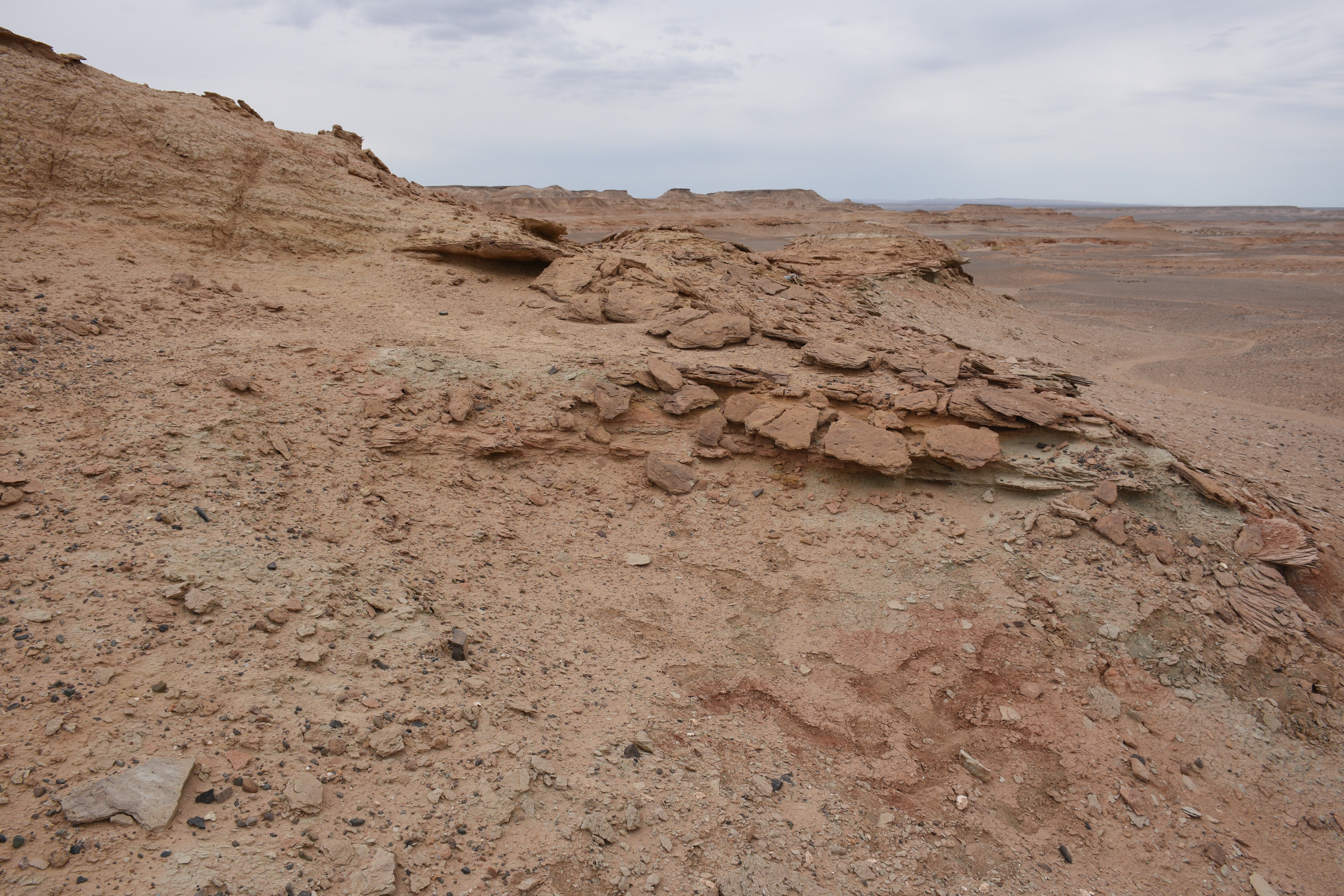 We arrived mid-afternoon, and I was immediately struck by how BIG Bugiin Tsav is. Scouting on Google Maps did not do the site justice. We drove to the southern end of the exposures, where a crew from Okayama University of Science was camped. We just happened to arrive on the last day for most of their crew, so we had a joint dinner and partied until the wee hours of the night. The next morning, most of their crew left, and the remainder joined our expedition.