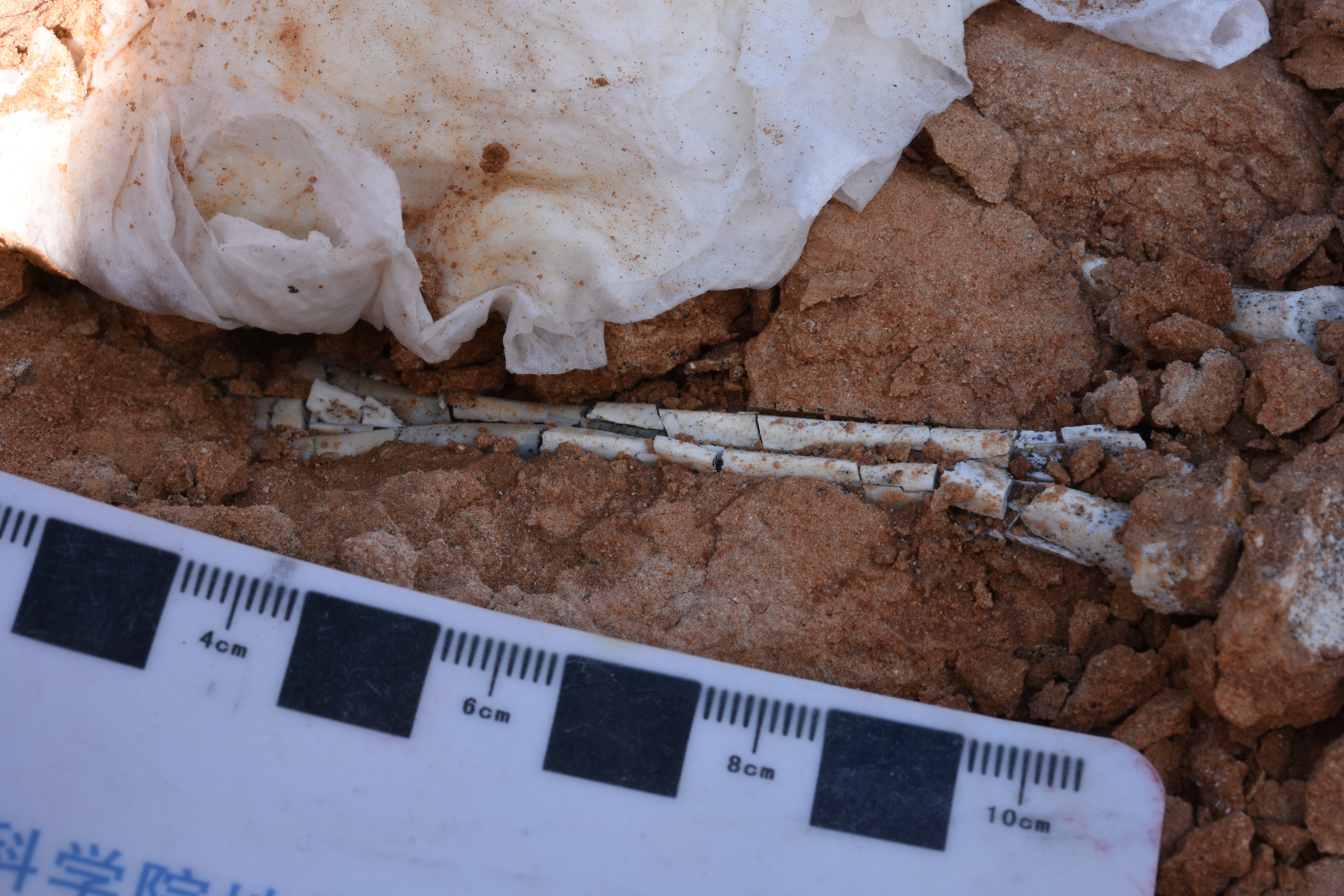 On the last day at Nemegt, we spent the morning at Khulsan, a sub-locality just east of Nemegt that produces incredible fossils of small animals. I didn’t find anything, but our crew found a mammal skull and several well-preserved bird eggs. In the afternoon, I went east of camp to prospect a beautiful area called the Red Walls. I wanted to get to an underprospected area called Viper Sayr, which has just never had enough coverage. Unfortunately, I wouldn’t contribute much, because I found a partial skeleton of an alvarezsaur just at the mouth of the Sayr. It would take me the rest of the afternoon to collect the specimen, so I didn’t get any further!