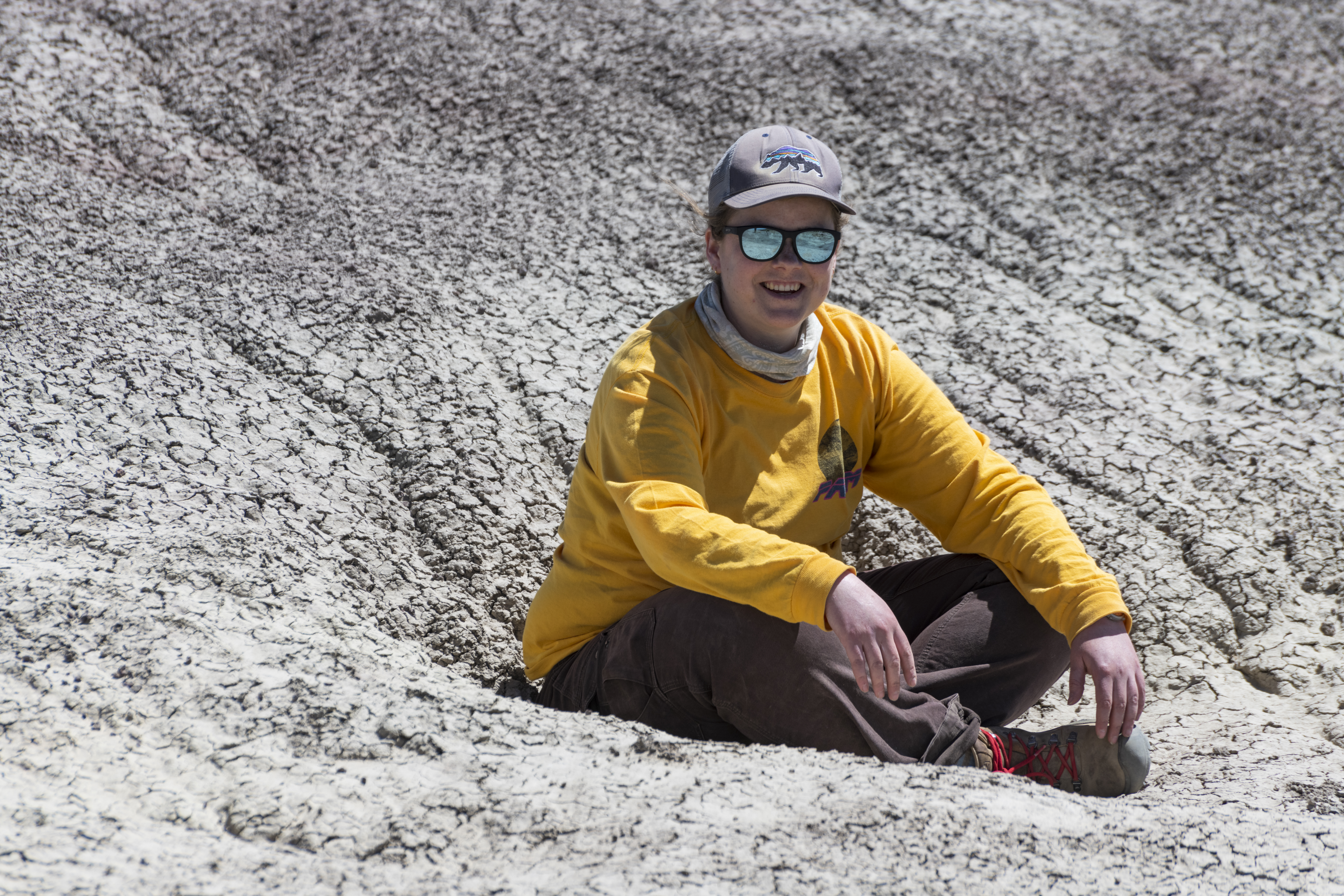 Gear packed, groceries bought, and cars rented, we left for a short four days in the San Juan Basin. We were a small crew, just six, including Sarah, Tom, Tom’s son Ryan, labmate Hans Püschel, Steve, and myself. We were greeted at our campsite by a fierce evening windstorm (hence the dust in my hair), but awoke the next morning to clear skies. We spent the first day surveying the areas around our campsite. After so long away from the field, it took a while for my eyes to readjust and start picking out fossils again. But quickly I started finding mammal teeth, and then they were everywhere I looked!
